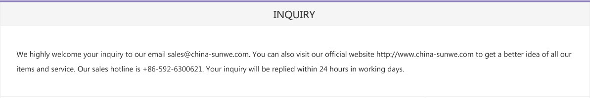 You can consult your trusted dealer for inquiry, you can also visit our official website: http://m.ebu.net.cn or call our sales hotline: + 86-592-6300621 for inquiry, We will reply your inquiry within 24 hours (excluding rest days).