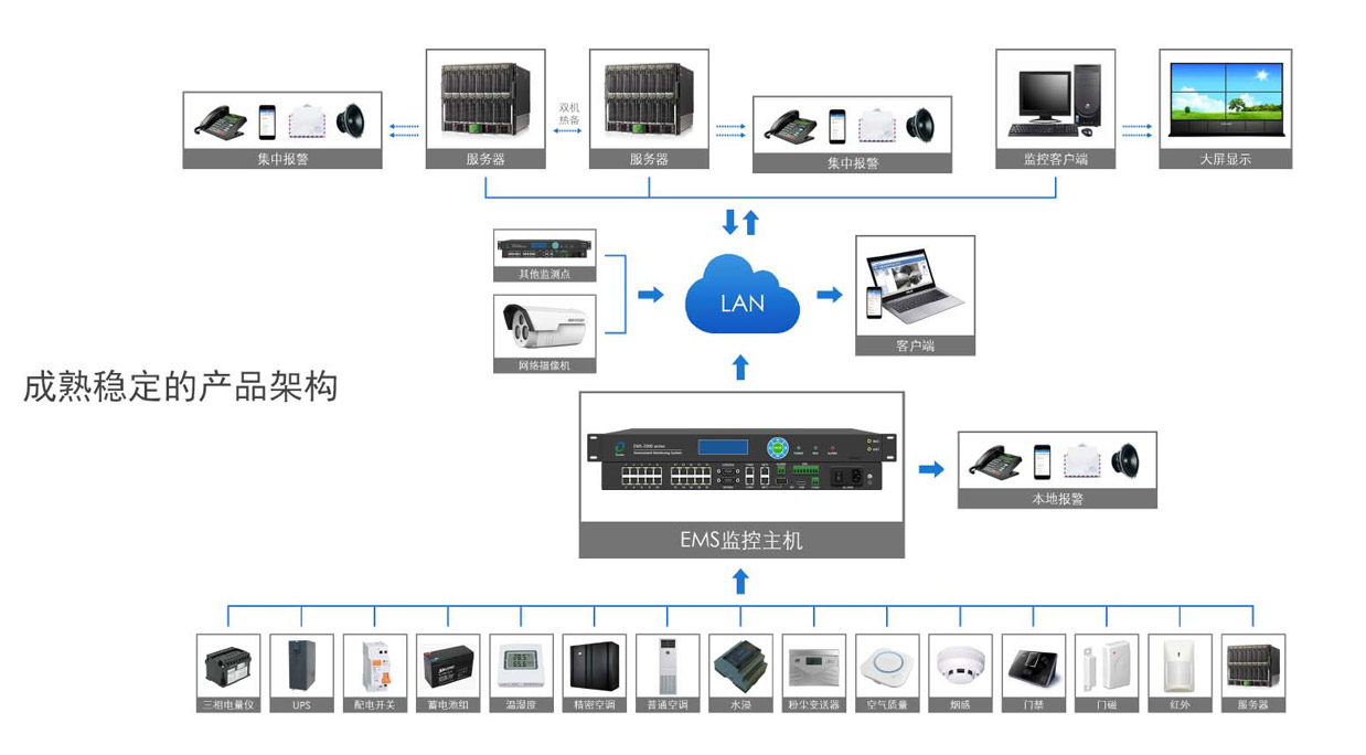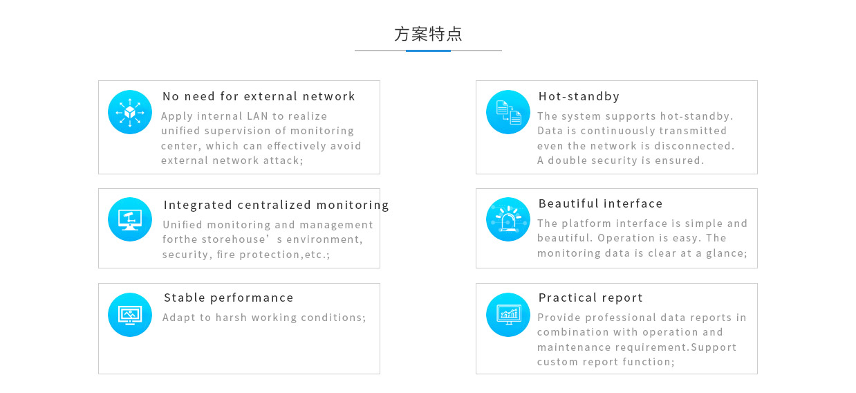 Unified monitoring and management for the storehouse’s environment,security, fire protection,etc.